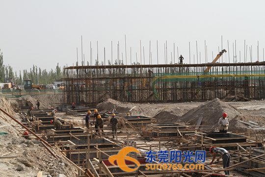 在位于第三師41團的產(chǎn)業(yè)園區(qū)內(nèi),建設工地現(xiàn)場一派火熱場面,當天上午35℃高溫擋不住建設熱情:扎鋼筋、綁腳手架、鋪水泥路等工作場景展現(xiàn)在記者眼前,這種場景在沿海發(fā)達地區(qū)常見,而在大漠戈壁叢中的城市實則少見。
