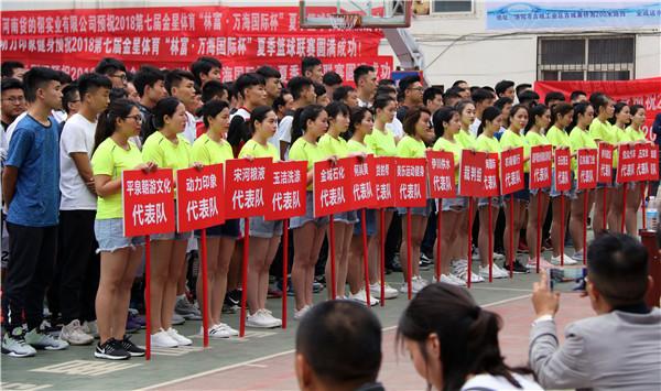 2018年5月26日18:00,2018第七屆伊川金星體育“林富·萬海國際杯”夏季籃球聯(lián)賽盛大開幕,伊川縣委常委縣委辦公室主任呂曉輝、伊川縣副縣長魏德峰、原人大副主任郭白舟、伊川縣教育體育局副局長韋冠朝、洛陽林富·萬海國際董事長李高峰、伊川美樂運(yùn)動健身有限公司總經(jīng)理賈芳、河南貨的幫實業(yè)有限公司總經(jīng)理朱永燦等領(lǐng)導(dǎo)及嘉賓出席開幕式,運(yùn)動員、教練員、裁判員、球迷們齊聚一堂,開啟了這場為期4個多月的籃球狂歡。