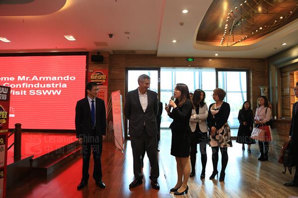 \u00A0 \u00A0 中國陶瓷網(wǎng)訊 2017年12月2日,為了加深對中國陶瓷衛(wèi)浴行業(yè)的了解及研究,意大利陶瓷工業(yè)聯(lián)盟總干事\u00A0Armando\u00A0Cafiero在中陶城集團總裁周軍、副總裁余敏等一行領(lǐng)導(dǎo)的陪同下,蒞臨浪鯨衛(wèi)浴營銷總部展廳參觀考察,浪鯨衛(wèi)浴市場總監(jiān)楊紅及外銷部代表悉心接待,并對到訪嘉賓表示熱烈的歡迎。