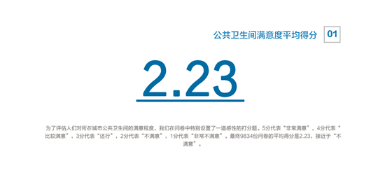 調(diào)查顯示,受訪者對公共衛(wèi)生間滿意度平均得分為2.23分(滿分為5分),北上廣深一線城市和沿海城市的公共衛(wèi)生間滿意度高于內(nèi)陸城市和農(nóng)村。受訪者最不滿意公共衛(wèi)生間的臟、臭、設備損壞嚴重。他們認為公共衛(wèi)生間“臟”的主要原因是,國民素質(zhì)不夠高、衛(wèi)生間設備自潔功能不足、衛(wèi)生間清潔頻率過低。超90%受訪者認為公共衛(wèi)生間智能化改造很有必要,因為智能公共衛(wèi)生間讓如廁更加便利和舒適。