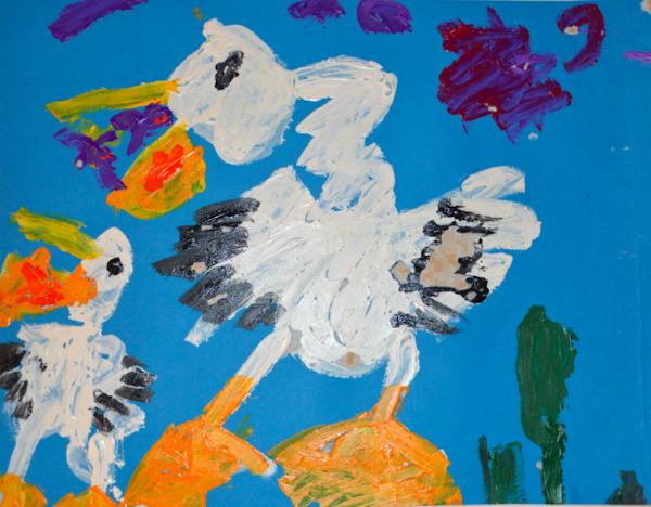 6歲小朋友郭澤陽創(chuàng)作的《Color of Night》榮獲本屆大賽金獎,其采用寫實感極強的油畫做基礎(chǔ),搭配自己的奇思妙想,不論藍色的夜、白色的羽毛、黃色的嘴、還是綠色的草,都展現(xiàn)出孩子天真爛漫、而又不拘一格的童心。