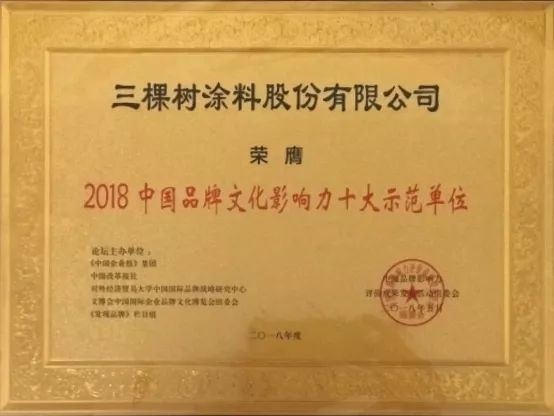 5月25日,“2018中國(guó)品牌影響力發(fā)展論壇暨(第五屆)中國(guó)品牌影響力評(píng)價(jià)成果發(fā)布活動(dòng)”在北京釣魚(yú)臺(tái)國(guó)賓館舉行,三棵樹(shù)榮獲2018年品牌影響力百?gòu)?qiáng)、品牌文化影響力十大示范單位殊榮。