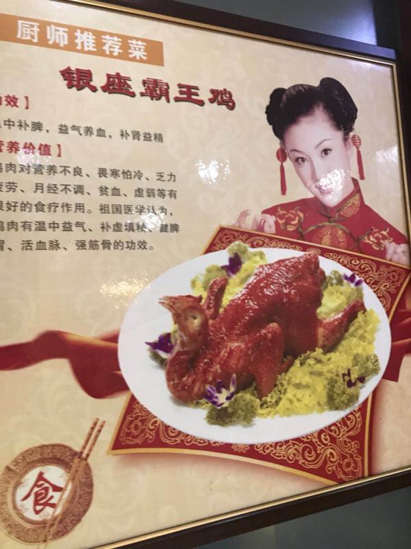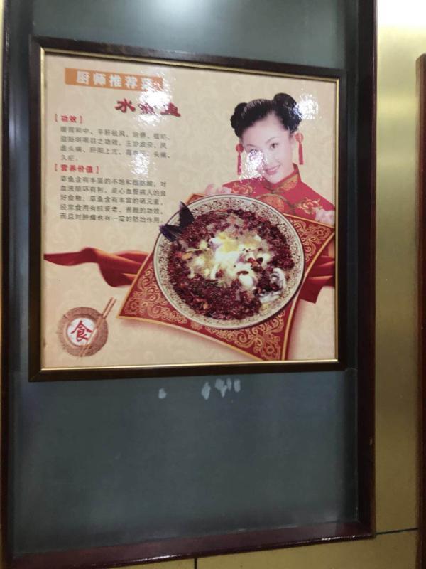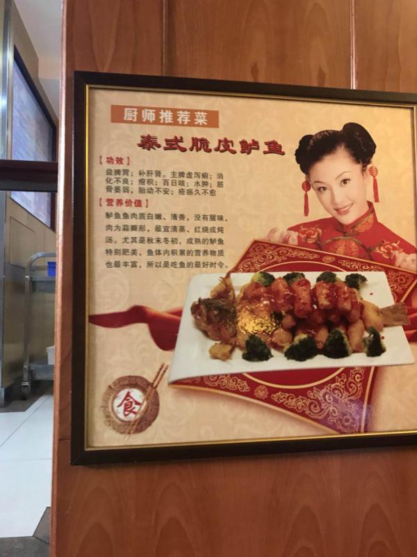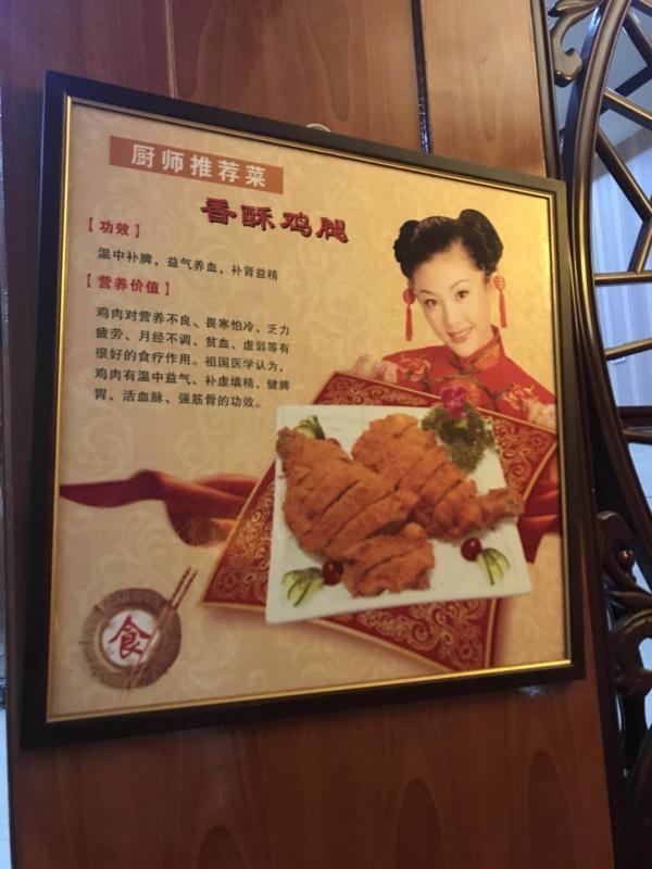 “吃了這家飯館里的菜品,有治療和預防很多種疾病的療效,這太讓人覺得有些不可思議了。”市民劉先生給本報新聞熱線打來電話,反映他在淺水灣花園小區(qū)旁邊一家名為銀座酒家看到的事情。根據(jù)劉先生提供的線索,記者22日晚間趕到了這家飯館。剛走進飯館的一樓的大廳,在菜品點餐區(qū)記者看到,一幅立在地上的“四季養(yǎng)生湯”的廣告宣傳畫非常醒目。宣傳畫中介紹了5種不同做法的湯品,每一種湯品都有治病的療效,不僅包括美容養(yǎng)顏、補血益氣,還可以防止衰老、潤肺、健脾、開胃、止咳等多種效果。沿著一樓的步行樓梯向二樓走去,在樓梯間的墻壁上懸掛著兩幅廚師推薦菜的宣傳板。香酥雞腿菜品的療效為溫中補脾、益氣養(yǎng)血、補腎益精的功效;水煮魚菜品的療效更為神奇,暖胃和中、平肝祛風、溢腸明眼目等功效,主治風虛頭痛、肝陽上亢等。在二樓到三樓的步行樓梯間中,也同樣懸掛著3幅廚師推薦菜的廣告板,有壇燒鮑魚雞、泰式脆皮鱸魚和銀座霸王雞。其中壇燒鮑魚雞,可調(diào)整腎上腺分泌、具有雙向性調(diào)節(jié)血壓的作用。泰式脆皮鱸魚有益脾胃;補肝腎,主脾虛瀉痢,消化不良,百日咳,水腫、胎動不安等功效。