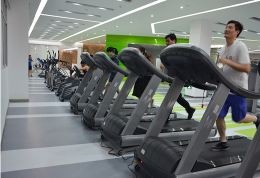 柒牌職工之家二樓-健身館,員工在使用跑步機(jī)進(jìn)行鍛煉