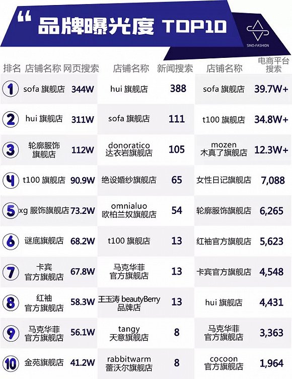 榜單分析:品牌曝光量與上月持平,sofa和hui表現(xiàn)最佳。