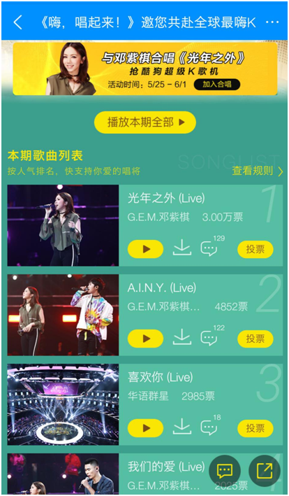 昨晚22:00,由酷狗音樂與江蘇衛(wèi)視聯(lián)合制作的“全民共唱大型音樂互動綜藝秀”《嗨,唱起來!》第五期,“鐵肺小天后”鄧紫棋駕到!