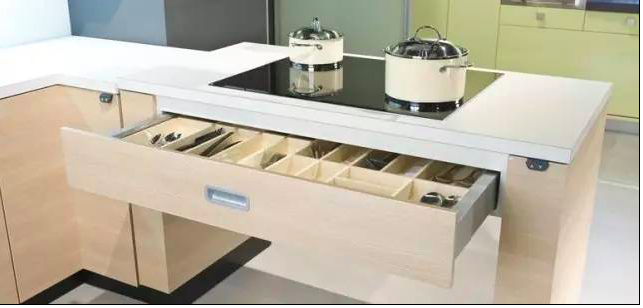 很重要的一點(diǎn)是抽屜要選擇全拉伸,而如果不想在炒菜時(shí)被沒關(guān)上的抽屜磕一下,也可以選一個(gè)帶阻尼自閉的。廚房碗碟等餐具分量都不輕,因此廚房抽屜的承重很重要,海福樂HD BOX弧形鋼抽高承重性及標(biāo)志拉伸功能 可以滿足不同的需求。廚房收納的目的不是為了把零散的小物件都收起來,讓廚房表面看上去很整潔,而是在烹飪的過程中能夠做到東西隨用隨找,服務(wù)于烹飪活動(dòng)。