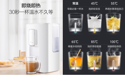 美的HE3001a即熱水壺還有30秒即熱的功能,特別適合有寶寶的家庭。沖泡奶粉或者是給寶寶喝水的時候再也不用久等。此外還有安全鎖功能,可防止寶寶誤操作。