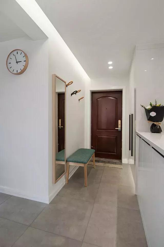 鞋柜都很好的隱藏了起來,白色也更顯整潔大方。墨綠的鞋凳就是很好的點綴,玄關(guān)也不會變得過于單一了,整體感覺很棒。