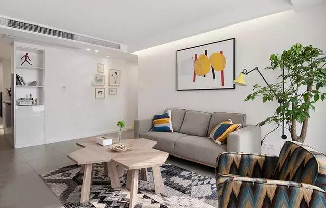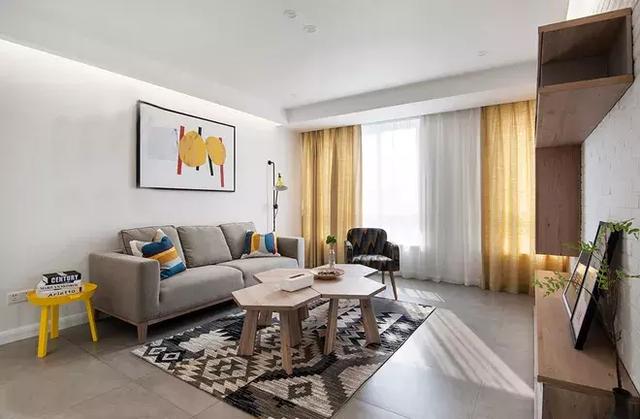 不規(guī)則的小茶幾組成桌子,風格上獨立又個性。簡約木質(zhì)搭配復雜的柔軟地毯,看似沖撞卻也意外的好看。
