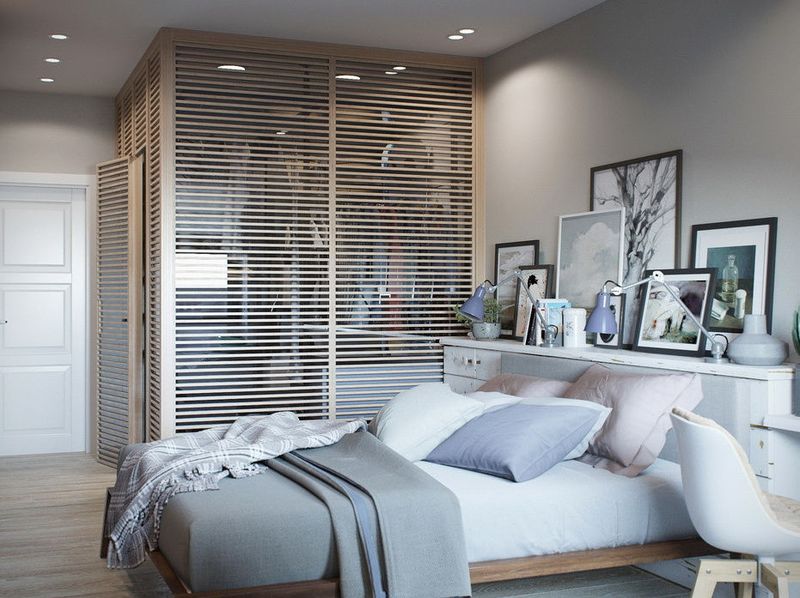 木質(zhì)地板搭配舒適的宜家家具,木質(zhì)的百葉窗隔出的衣帽間,更有感覺(jué),充分地利用了空間。