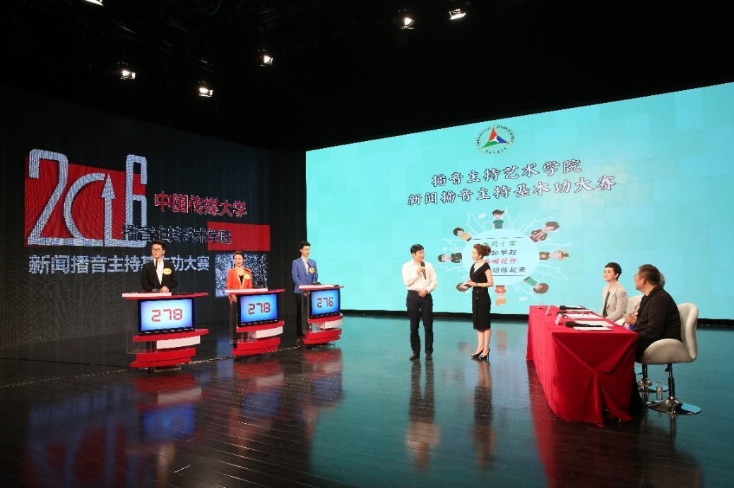 為加強(qiáng)新聞播音基本功,強(qiáng)化勤學(xué)苦練的工匠精神,以創(chuàng)新方式弘揚(yáng)新聞播報(bào)等傳統(tǒng)優(yōu)勢(shì),每年春天,學(xué)院將啟動(dòng)新聞播音主持基本功大賽。基本功大賽的內(nèi)容學(xué)習(xí)借鑒了廣電總局的崗位練兵大賽,將播音主持基本功細(xì)化為4個(gè)比賽項(xiàng)目:辯義識(shí)音、新聞播報(bào)、新聞復(fù)述、新聞專題片解說(shuō)。這四個(gè)項(xiàng)目?jī)?nèi)容不但與第一線的業(yè)務(wù)要求接軌,也是校內(nèi)教學(xué)訓(xùn)練的重點(diǎn),是業(yè)界和校內(nèi)學(xué)習(xí)的共同關(guān)切,也進(jìn)一步明確和強(qiáng)化了與一線交流和進(jìn)行實(shí)踐教學(xué)的結(jié)合點(diǎn)。2016年新聞播音主持基本功大賽與北京電視臺(tái)合作,大賽最終決選在北京電視臺(tái)青年頻道《狀元榜》節(jié)目演播室。