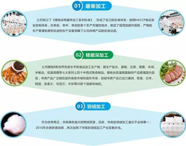 如今,華英通過連續(xù)實施五期大的工程建設,完成了“中國鴨王”、“亞洲鴨王”、“世界鴨王”的三級跳,實現(xiàn)了自身跨越式發(fā)展。業(yè)務模式也從屠宰加工,逐漸發(fā)展為精細深加工和羽絨深加工,不斷壯大。