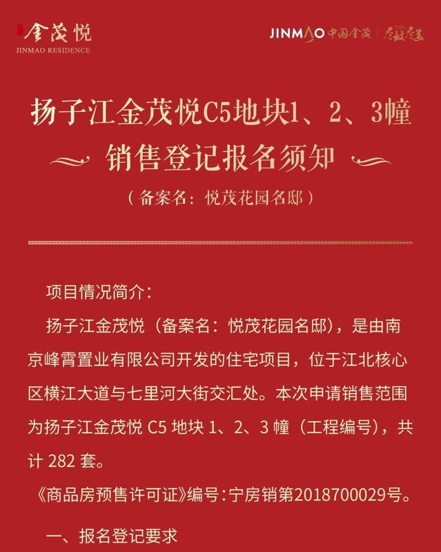 最新消息!位于核心區(qū)的揚子江金茂悅銷許已領,首付5成,明天就開始登記!