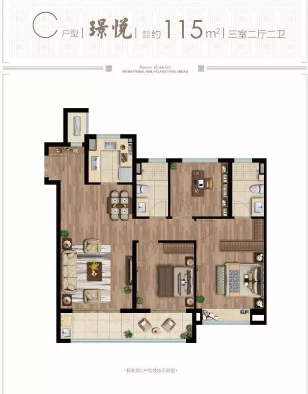 C戶型 115㎡,三室兩廳兩衛(wèi)▼▼▼