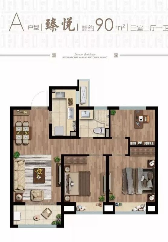 A戶型 90㎡三室兩廳一衛(wèi)▼▼▼