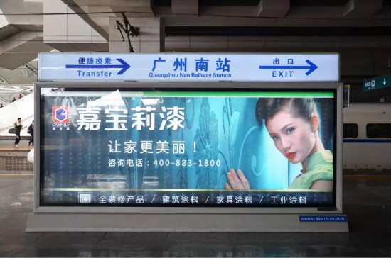 ▲廣州南站月臺嘉寶莉品牌燈箱廣告