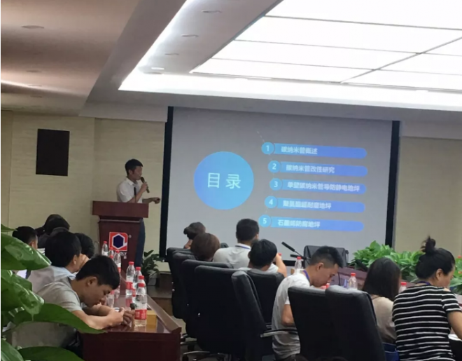 本次培訓(xùn)會邀請的都是優(yōu)秀經(jīng)銷商代表,考慮到大部分經(jīng)銷商是有基礎(chǔ)施工經(jīng)驗(yàn)的,所以組委會對本次培訓(xùn)課程安排更注重施工技術(shù)和施工細(xì)節(jié)方面的實(shí)操!同時(shí),諸如單壁碳納米管及石墨烯產(chǎn)品、環(huán)氧磨石等新產(chǎn)品新工藝也在本次培訓(xùn)會亮相。特別對防滑綠道、彩砂自流平、水性聚氨酯等產(chǎn)品,從產(chǎn)品特點(diǎn)、工藝流程、施工技巧等方面深入淺出的進(jìn)行了講解和實(shí)際演練,并現(xiàn)場互動(dòng),分享其中的關(guān)鍵步驟。