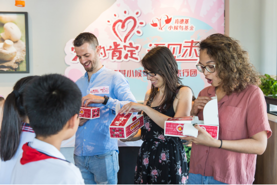 北京肯德基小候鳥閱世界旅行團由北京肯德基有限公司基于肯德基“小候鳥基金”項目宗旨成立,立足于北京國際化大都市背景及首都國際文化交流中心的定位,以肯德基品牌優(yōu)勢,借助優(yōu)質(zhì)的文化教育資源,通過一系列社會認知活動,將“小候鳥”的日常閱讀與社會實踐結(jié)合,幫助小候鳥開拓國際視野,了解外國文化,讓“小候鳥”們通過肯德基公益活動打開與世界溝通的文化交流之窗。從去年至今,北京肯德基小候鳥閱世界旅行團通過多場語言溝通學習活動,幫助小候鳥與在京外國友人搭建起溝通橋梁,讓“小候鳥”們獲得陪伴的同時,主動發(fā)聲成為中外文化溝通的使者。在5月31日北京肯德基 “愛的肯定?語見未來”活動開場,各國友人通過日常生活場景結(jié)合肯德基提供的健康餐飲,為“小候鳥”們帶來一場別開生面的“國際語言課”。雖然只是簡單的詞匯和語句教學,但是“小候鳥”們通過這場活動進一步認識到世界的變化,也了解到其他國家小朋友的生活。