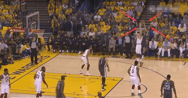 第二幕,第一節(jié)末端,勇士又是換防,經(jīng)過了杜蘭特、麥基一系列的擋拆后,克萊對(duì)上了樂福,這里樂福是沒有上去緊貼克萊的,庫里瞅準(zhǔn)時(shí)機(jī),直接傳給克萊,克萊想都不想直接扔,略帶后仰的姿勢(shì),高弧度的出手,球空心入網(wǎng)!看著樂福在防守了,這回是真晚了一步!放了克萊起跳的機(jī)會(huì),那想挽救是真來不及了,樂福的手是張出來了,但到了湯普森面前已經(jīng)在下落了,而湯普森此時(shí)出手的平面遠(yuǎn)高于樂福,這球?qū)τ跍丈泻坞y度?沒有啥難度吧?