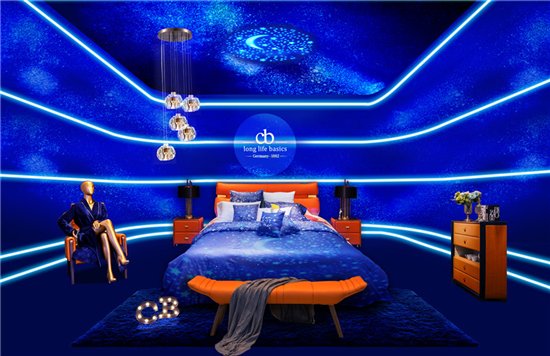 此次展會亮點(diǎn)――德國朗樂福打造”美學(xué)睡眠體驗(yàn)間“星逸。德國進(jìn)口面料彩度偏低的星空藍(lán)定制床品,搭配色彩飽和度高的愛馬仕橙時尚套床,富有生命力的同時予人冷靜和放松的感覺,譜寫出的優(yōu)雅靜謐與自然柔美,宛如置身于星空中般美好。當(dāng)藝術(shù)禮遇睡眠,奢享極致舒適睡感。