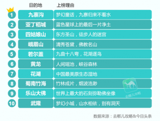 四川省擁有豐富的自然資源和多彩的少數(shù)民族文化,適合周邊游的景區(qū)星羅棋布,上榜地區(qū)多數(shù)來自甘孜及阿壩自治州,從“人間仙境“九寨溝到“秀甲天下”峨眉山,處處是風景,成都人不出本省便可盡覽秀麗的山川。
