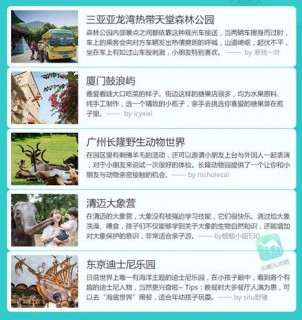 交通距離較近、設施便利、空氣清新是父母帶孩子旅行的目的地首選因素,此外,讓孩子有機會與動物和大自然親切接觸也是親子旅行的重頭戲。三亞、廈門以當仁不讓之勢位居前茅,廣州、清邁、東京也以特色親子游玩項目贏得寶貝和父母的青睞。