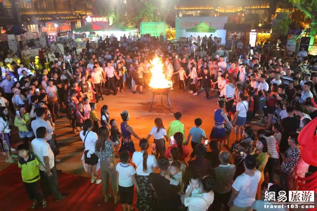 在當(dāng)天的啟幕現(xiàn)場,50多家各色小吃、民俗產(chǎn)品琳瑯滿目,舞臺、音響、燈光把整個現(xiàn)場裝扮地炫彩十足;營地音樂會、世界杯主題屏等各具主題的活動也是激情四射;在美食區(qū)域,超大鍋的龍蝦、成排的燒烤、大罐的啤酒簡直勾的游客垂涎欲滴。當(dāng)天,近萬名游客成群結(jié)隊,將整個現(xiàn)場擠得水泄不通,嗨爆的音樂更是點燃了全場游客熱情。景區(qū)管理方直呼“想不到”。當(dāng)晚,景區(qū)緊急實施限流入園。