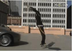科比先是展示了自己的鞋子,旁邊的朋友勸他不要沖動,但科比不停說著:“I got it,I can do this(我知道我在做什么,我能做到)。”然后就是下面這一幕,科比果真跳過了汽車。