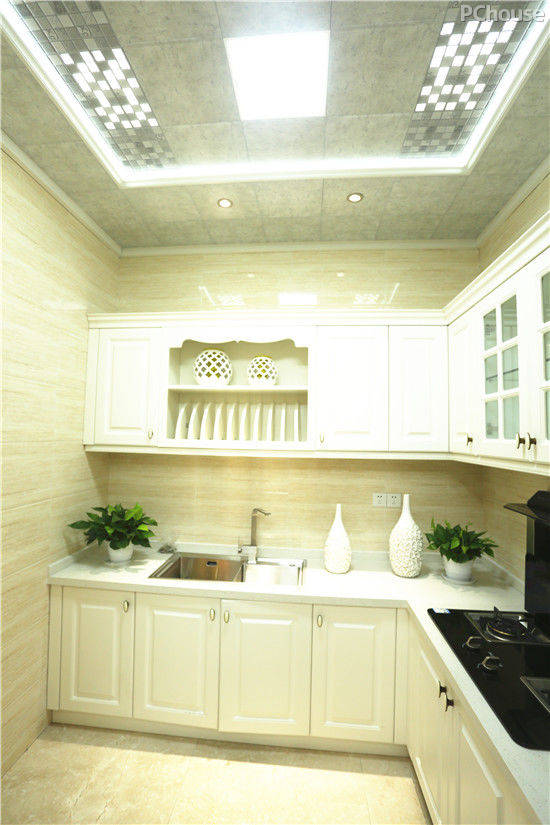 這一廚房空間展示,頂部為奧普凈享系列產(chǎn)品。如同植物的光合作用般,只要有光照就可以持續(xù)降解甲醛。另外,依據(jù)光催化的原理,光觸媒產(chǎn)品也可起到除臭、殺菌、防潮防霉等效果。
