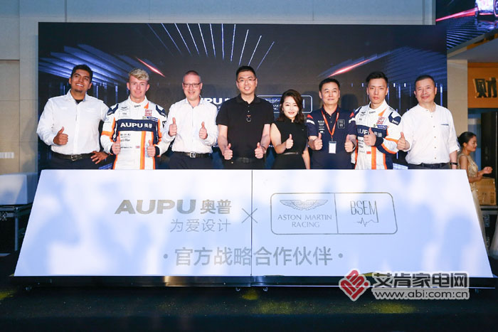 與會(huì)嘉賓在奧普贊助的阿斯頓馬丁GT4賽車前合影