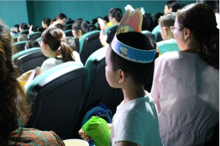 (潮宏基工作人員和孩子及其家長一起觀看電影)