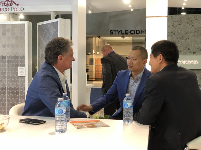 唯美集團總裁、馬可波羅瓷磚董事長黃建平,唯美集團常務副總裁、馬可波羅瓷磚總經(jīng)理謝悅增出席本屆展會,與世界各國的客商進行交流。