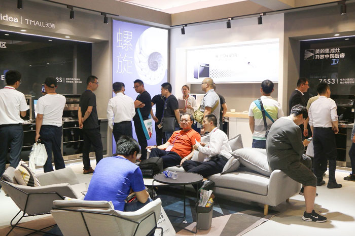 本次上海廚衛(wèi)展,美的集成灶全面展現(xiàn)開放廚房理念,展館設計采用開放式,以高級灰和原木色展現(xiàn)極簡主義設計風格,走進5N館,簡約大氣的展館設計吸引了眾多客戶的目光。