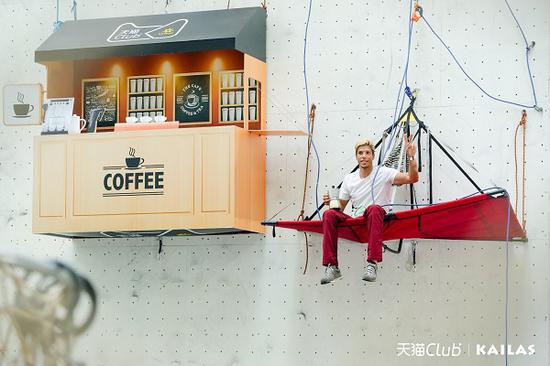 \u00A0 \u00A0 \u00A0 膽子更大的是來(lái)自巴西的攀巖天才Marcos,這次他將賴以成名的絕活搬來(lái)了上海——在懸崖峭壁上開(kāi)了一家臨時(shí)咖啡館。