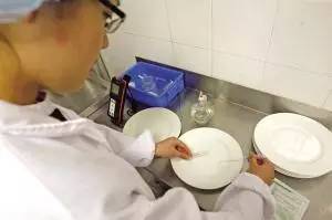 據(jù)北京市食藥監(jiān)局通報,此次抽檢餐飲食品253批次,其中合格樣品235批次,不合格樣品18批次。而這18個批次不合格的樣品均是餐廳中的碗碟盤杯等用具。
