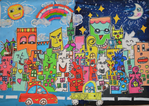 ▲2018年安奈兒創(chuàng)意大賽銀獎(jiǎng)作品《里茲的快樂房子家族》 7歲 馮紫靈