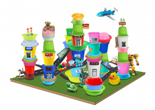 又如琳子美術(shù)教育,利用兒時(shí)玩過的玩具和各色的塑料盆等材料,與孩子們共同搭建出了一個(gè)專屬于孩子們的《記憶城市》,與5組關(guān)于“未來城市”的優(yōu)秀兒童畫作一起,組成了童趣滿滿的Looking-日常界。