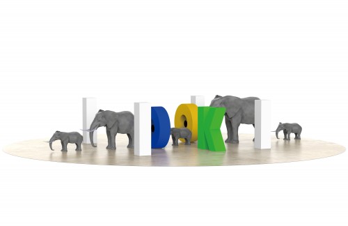 如雕塑家李琳琳作品《不同尋常的存在》,4.5米高的大象和兔子群旁若無人地穿行在美術(shù)館的展廳中,與五組以“你眼中的世界”為主題的兒童畫作一起,構(gòu)成充滿超現(xiàn)實(shí)意味的“Looking-巨人眼”。