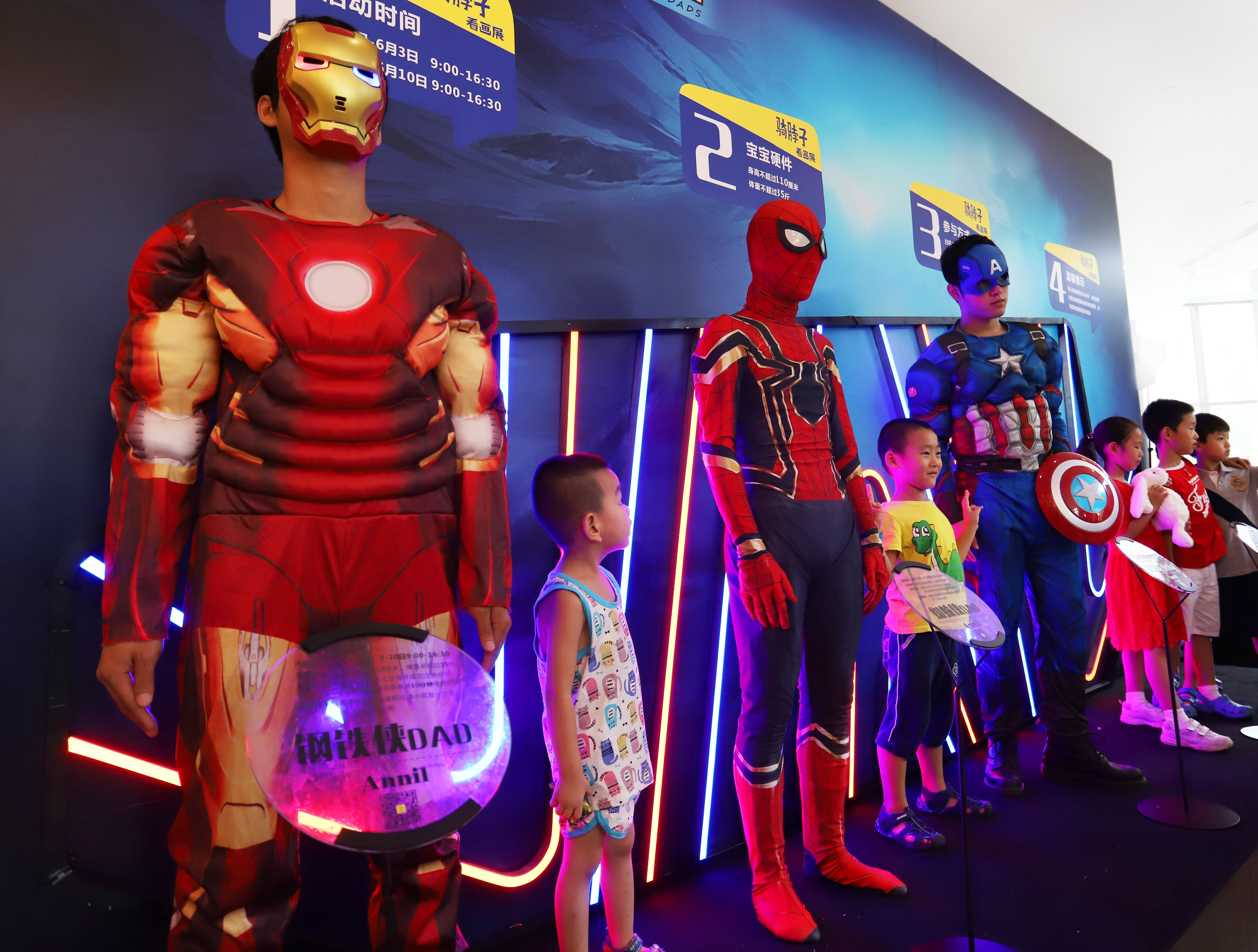 據(jù)了解,該畫展不僅展出200多幅優(yōu)秀兒童畫作,還有著名雕塑家李琳琳和相關(guān)受邀藝術(shù)機(jī)構(gòu)的作品,四大展廳風(fēng)格多樣,作品類型多元,豐富的公共教育互動游戲更是大受歡迎。值得注意的是,畫展現(xiàn)場還有一群身材健碩的“共享奶爸”,分別打扮成鋼鐵俠、蜘蛛俠、美國隊長和國王的形象,一出場就引發(fā)了眾多孩子的關(guān)注,大家爭相預(yù)約,體驗“不一樣”的騎脖子觀展方式。在場家長對此也做了積極評價,認(rèn)為“共享奶爸”這一設(shè)置非常暖心,不僅為沒有爸爸陪伴的小朋友提供了同樣美好的觀展體驗,還為整個畫展增添了許多樂趣。