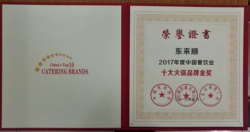 此外,本次大會還對改革開放40年中國餐飲業(yè)突出貢獻的企業(yè)、2017年度中國餐飲業(yè)十大品牌以及2017年度中國餐飲業(yè)百強企業(yè)和五百強門店進行了頒獎。其中,東來順集團榮獲“改革開放40年中國餐飲業(yè)老字號新輝煌企業(yè)”和\