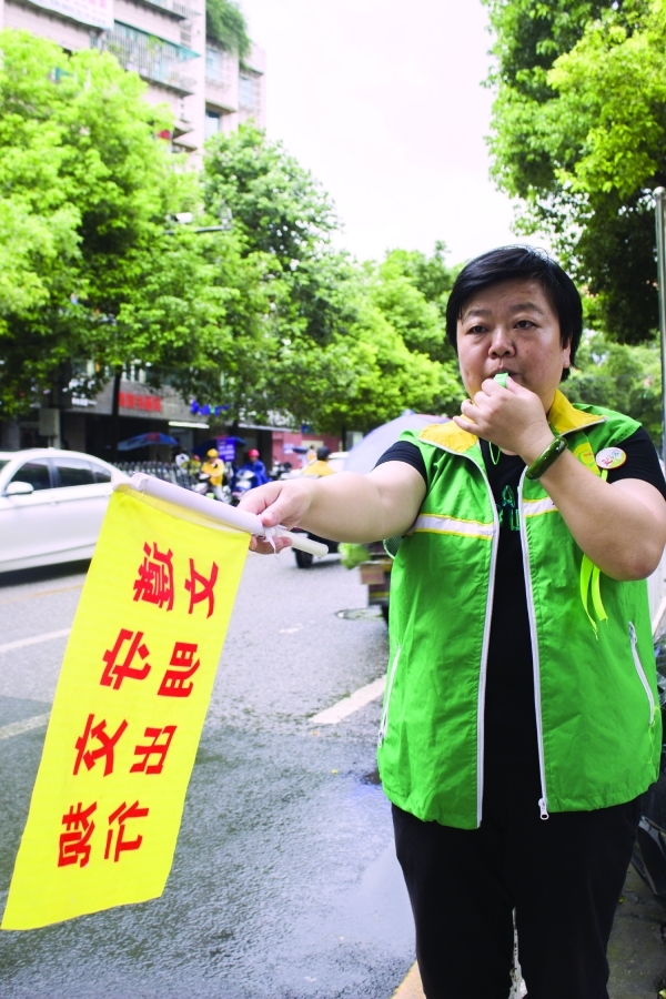 云巖區(qū)志愿者在引導(dǎo)市民文明出行。(資料圖片)