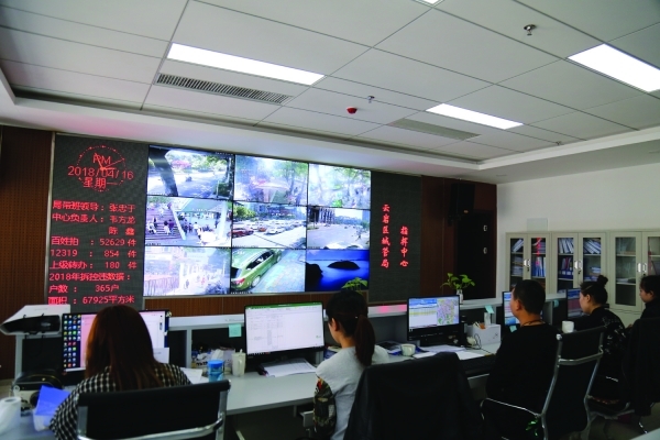 云巖區(qū)城管局指揮中心的工作人員在實(shí)時(shí)監(jiān)控街面情況。通訊員 白驥 攝