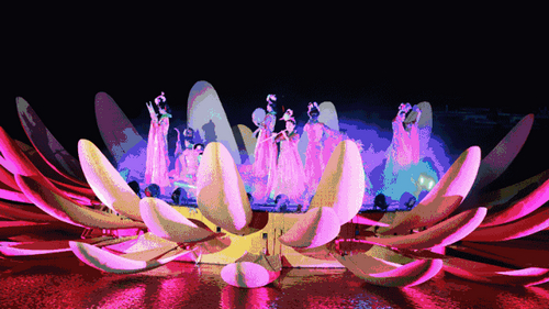 《大宋·東京夢(mèng)華》實(shí)景演出更是精彩震撼。八首經(jīng)典宋詞和一幅《清明上河圖》串聯(lián)的畫面,結(jié)合眼前的亭臺(tái)樓榭、水系廊橋,運(yùn)用了大量的科技手段,制造出夢(mèng)幻般的效果……如歌如泣的講述了一段北宋的興衰,讓孩子們換個(gè)方式看故事,看歷史……
