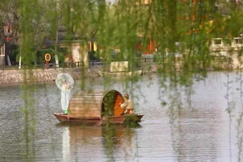 坐著游船蕩舟汴河,行船劃開汴河之水,留下一道道波紋,微風(fēng)拂動(dòng)細(xì)柳,剛好掩映著飄來的小船,一切都顯得那樣的恰到好處。