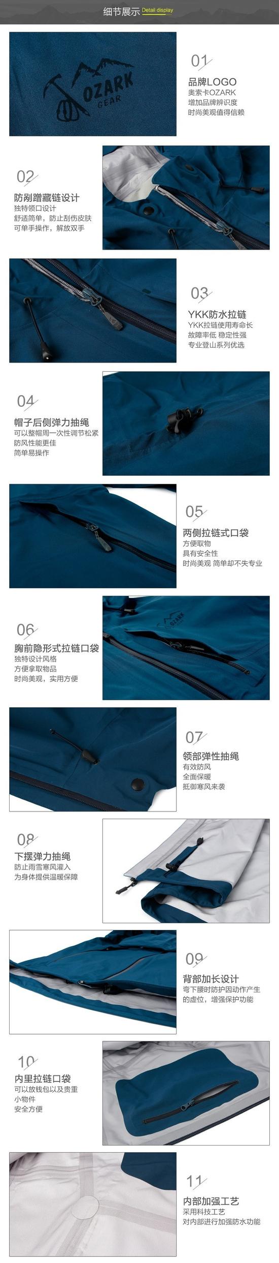 半隱藏卡扣帽口調(diào)節(jié)方式,可單手操作,解放雙手,三向立體調(diào)節(jié)帽子,簡便易操作; 下擺調(diào)節(jié)繩向上固定,無論放松或收緊,都不會有多余的繩子露出; 防風馬蹄形袖口設(shè)計,內(nèi)接四面彈性防風袖口,防風效果更好,舒適性更高;
