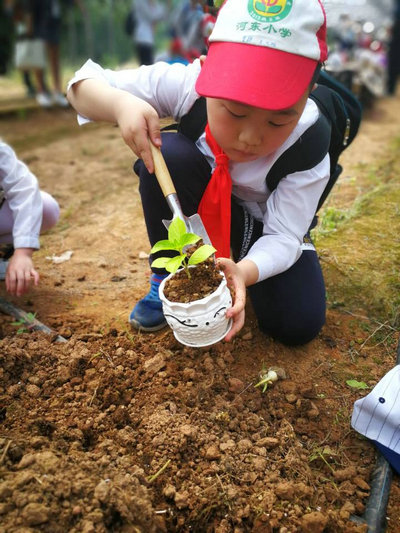 徜徉花海間,孩子們在園藝師認(rèn)真地講解下,認(rèn)識了香彩雀、大花海棠、石竹花、香水百合等多種花卉,并了解了它們的分類知識和開放特征;走進苗圃里,孩子們在園藝師的耐心指導(dǎo)下,拿起小鐵鏟、空花盆,細心地栽種起自己喜歡的小花苗,那模樣,別提有多認(rèn)真啦!