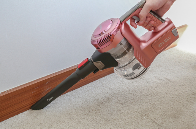 除了清潔地面、桌面、縫隙等區(qū)域,美的P3-lady連接上延長(zhǎng)管后還可以用來(lái)清潔墻壁、天花板等高處,解決了我們夠不到、踩凳子的尷尬。