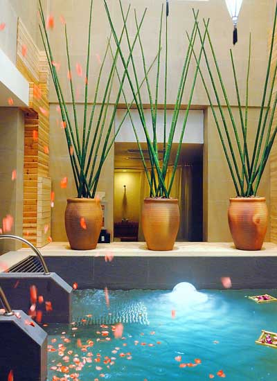 在尚泉,您能體驗SPA的天然淳美、滲透心靈的悉心呵護(hù)。這里的每個細(xì)節(jié)都傳承著SPA簡約卻不簡單的理念,力求帶給您SPA全然之美的藝術(shù)氛圍。作為一個SPA應(yīng)該具備三個元素:熱量、浮力和按摩。這三元素結(jié)合在一起就會帶給 您一個非常奇妙的放松和舒緩的體驗。浸泡于SPA 的溫水當(dāng)中,體溫的升高會使血管得到擴(kuò)張從而促進(jìn)血液的循環(huán)。而浮力就會抵消人體自身大約90%的重力,從而減輕人體關(guān)節(jié)和肌 肉的壓力,進(jìn)而讓您產(chǎn)生一種失重的感覺。減壓水療聚集以上的三元素的同時,在每個減壓的環(huán)節(jié),都添加了不同的高品質(zhì)單方精油,起到排毒、增加微循環(huán)、活膚等效果。