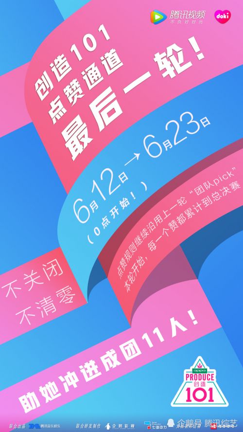 -今晚12點(diǎn)(6月12日0點(diǎn))點(diǎn)贊通道開啟,為你pick的小姐姐沖刺加油,讓她成為成團(tuán)11人之一吧!